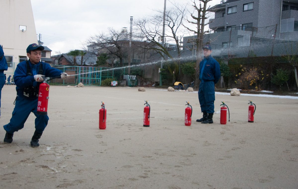 Ce matin les pompiers de Kyoto sont venus visiter notre établissement