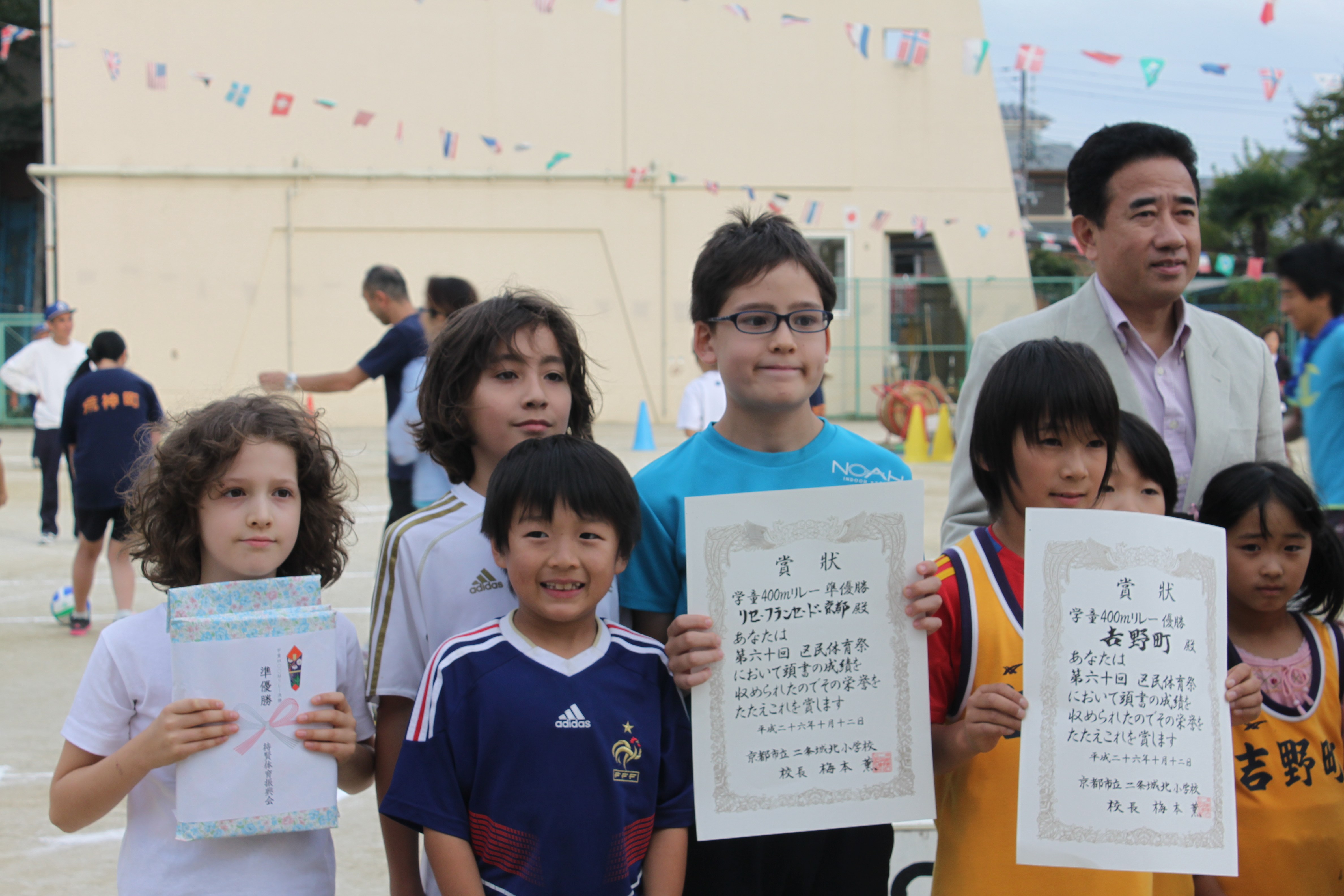 C’est finalement sous un ciel clément, le typhon à l’approche de l’archipel n’ayant pas perturbé la fête, et dans la bonne humeur que les équipes d’enfants et de parents du Lycée français de Kyoto ont pris part à cet évènement majeur dans la vie du quartier de Taiken.