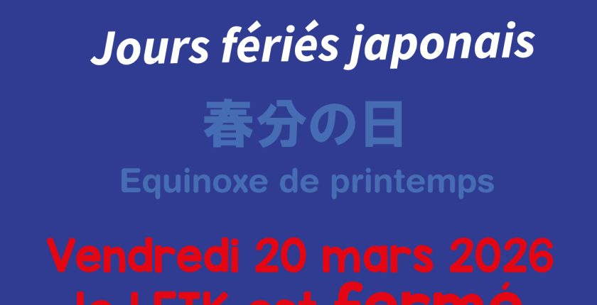 📢 Rappel : En raison du jour férié japonais (équinoxe du printemps), le vendredi 20 mars, le LFIKYOTO sera fermé et n’accueillera pas les élèves ce jour-là.