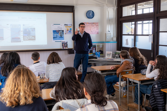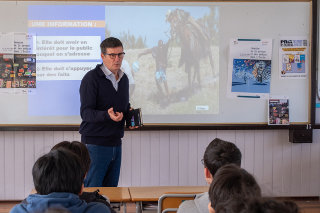 Tout au long de la journée, M. Pionnier a rencontré nos élèves pour partager son expérience de journaliste et expliquer le fonctionnement de l’Agence France-Presse, l’une des plus grandes agences de presse au monde. Les élèves de 4e et de 3e ont d’abord échangé avec lui en fin de matinée, avant que les élèves de 1re et de Terminale ne poursuivent la discussion l’après-midi autour des enjeux du journalisme aujourd’hui : vérification de l’information, fiabilité des sources, circulation des images et responsabilité des médias.