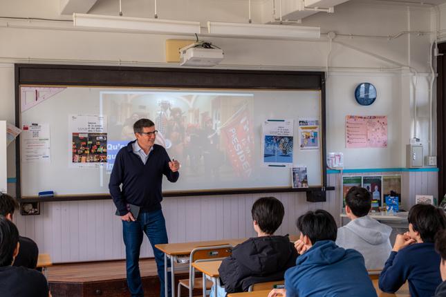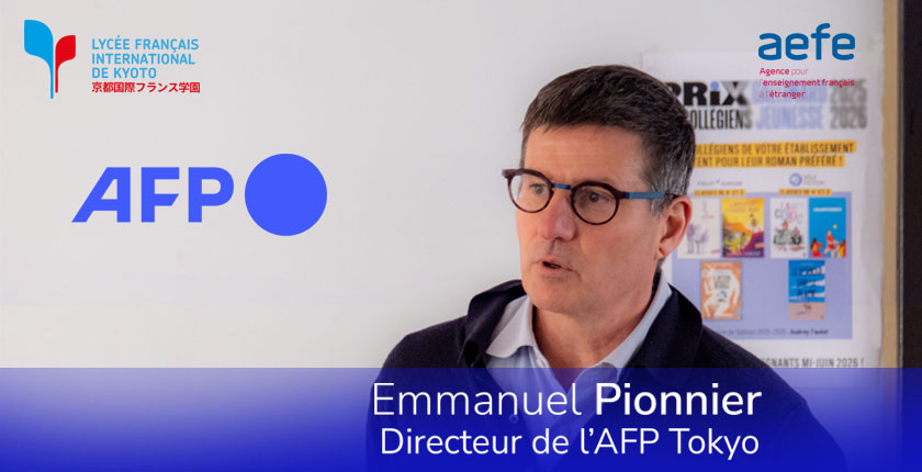 Hier, lundi 9 mars, notre établissement a eu le plaisir d’accueillir Emmanuel Pionnier, directeur de l’AFP Tokyo, dans le cadre de la Semaine de la presse et des médias dans l’école. Cette rencontre a été organisée par Madame Jeanson, professeure documentaliste, avec le soutien de Marie Doco, professeure PRIO, qui coordonne les rendez-vous d’orientation au lycée.