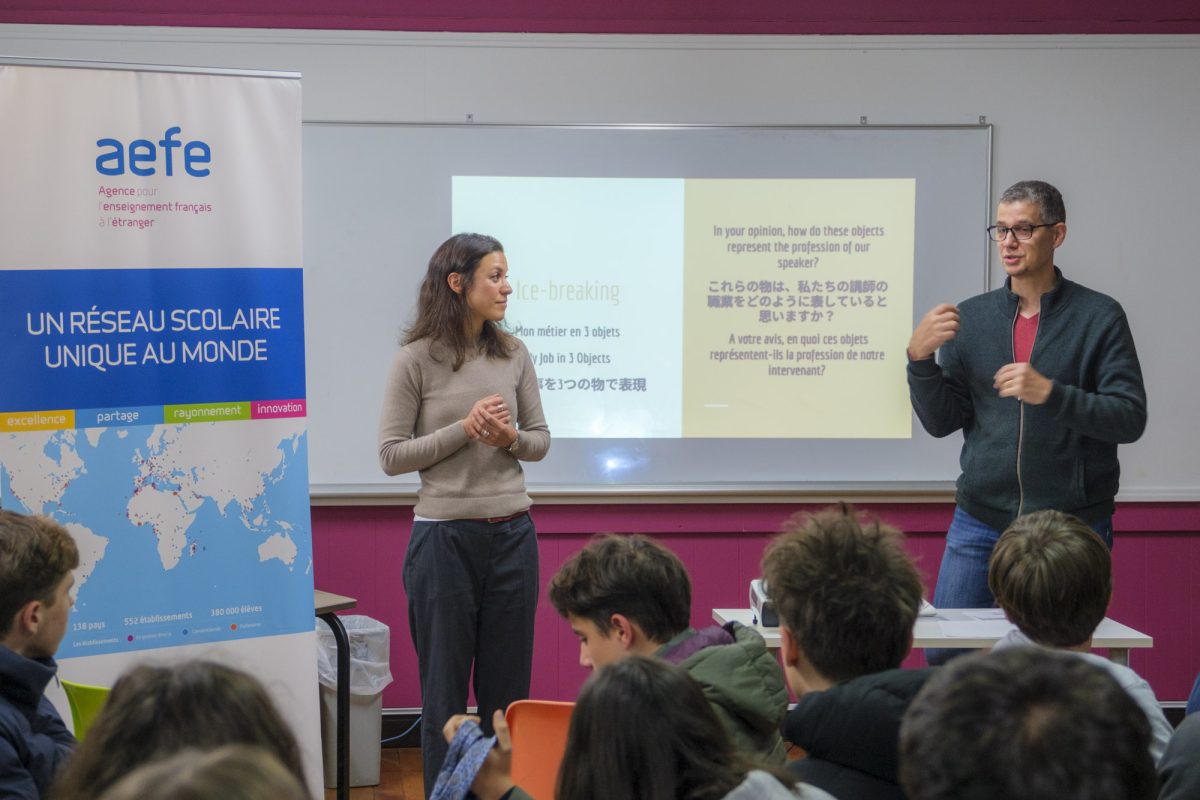 Pour débuter cette nouvelle semaine, le dispositif piloté par Mme Doco a ouvert une troisième fenêtre sur le monde professionnel, cette fois-ci en poussant les portes du prestige et de la haute hôtellerie. Ce lundi 15 décembre, les élèves du Lycée français international de Kyoto ont reçu M. Gilles Perrin, Directeur Food & Beverage au Ritz-Carlton.