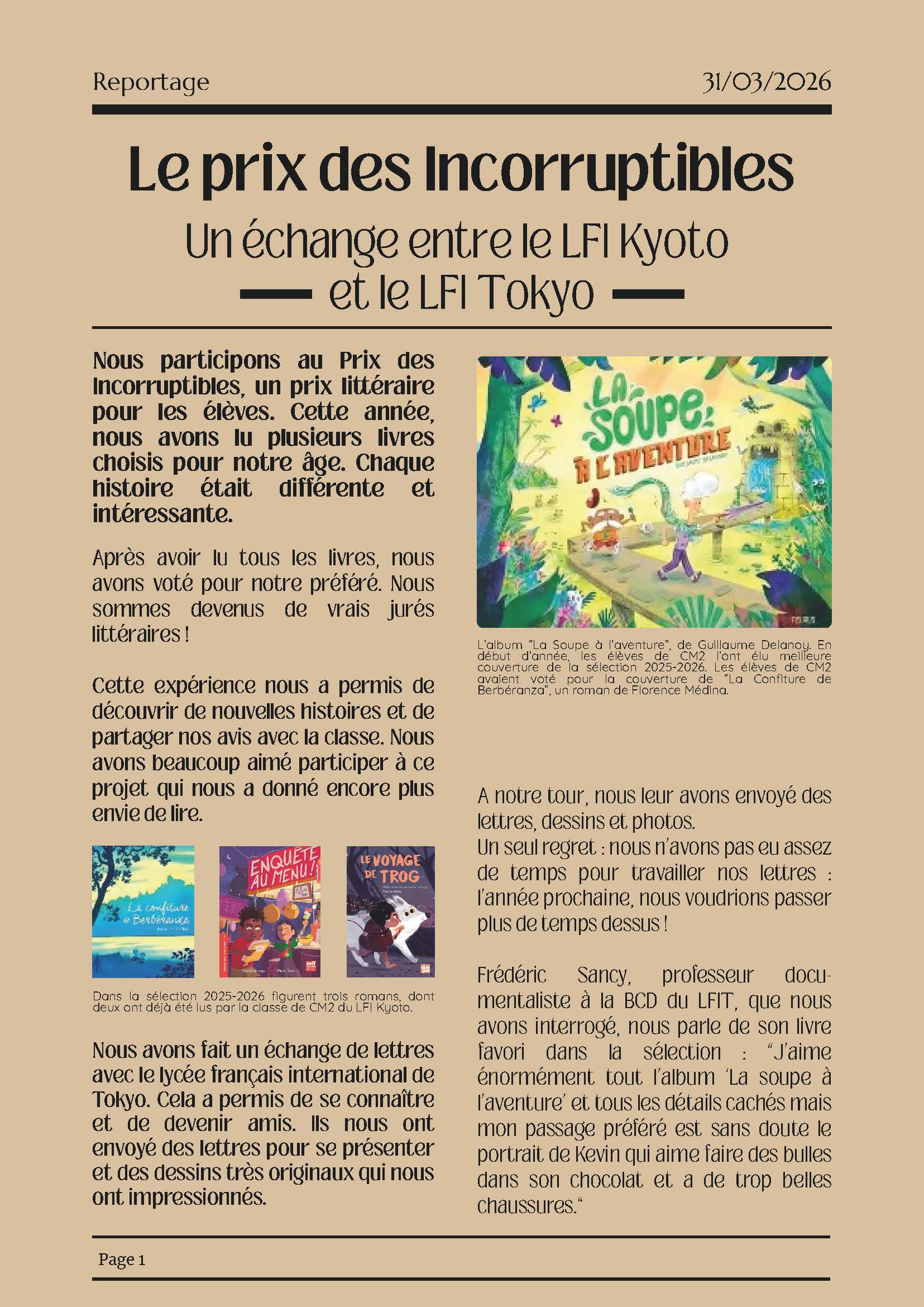 Radio LFI Kyoto fait peau neuve ! Dans le cadre du prix “Les Incorruptibles”, nos élèves de CE2 vous partagent leurs coups de cœur et vous présentent ce beau projet collaboratif.